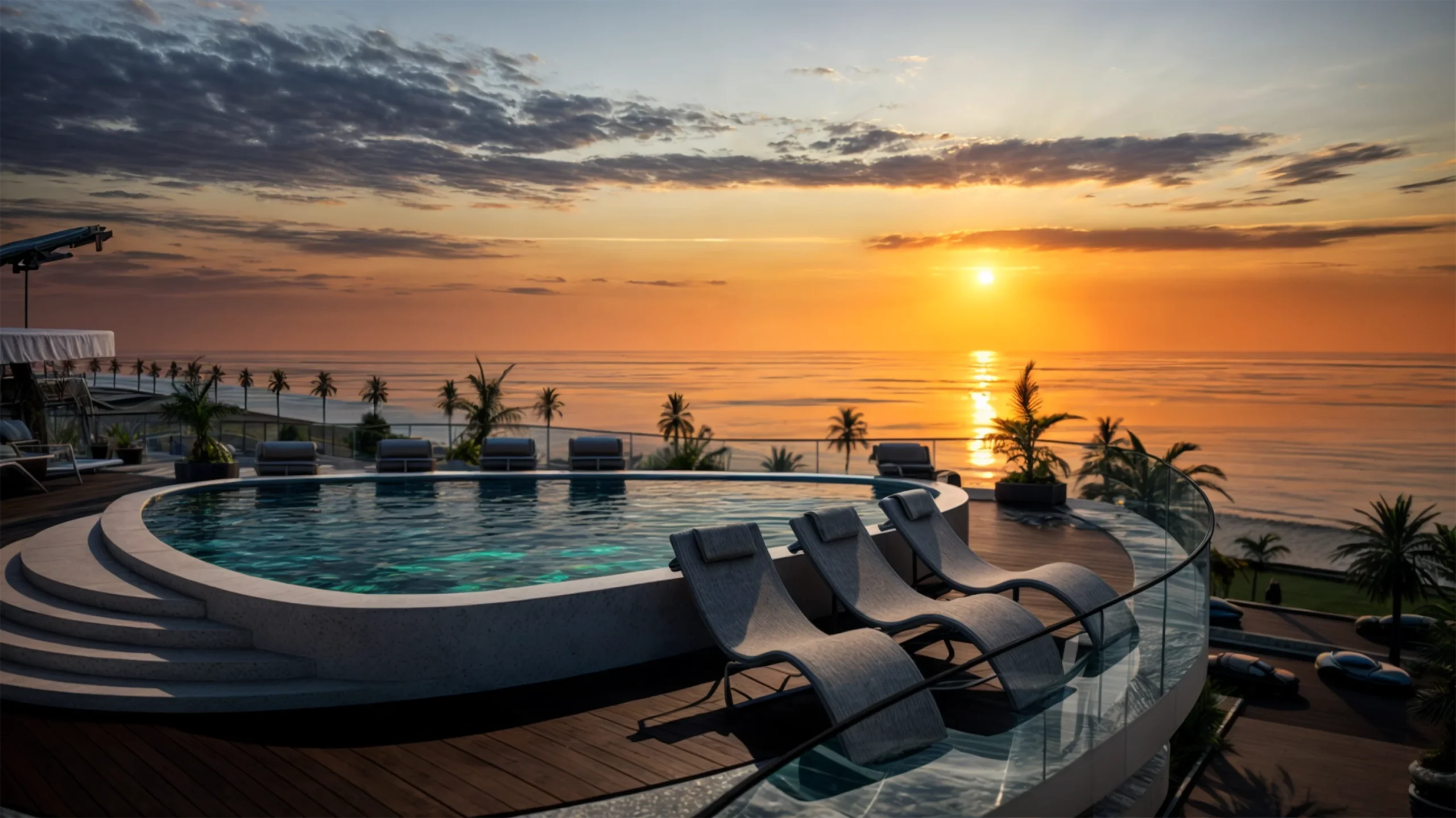 sky-bar, 2 swimming pools, open-air movie theater, restaurant, billiards, cafe-library.